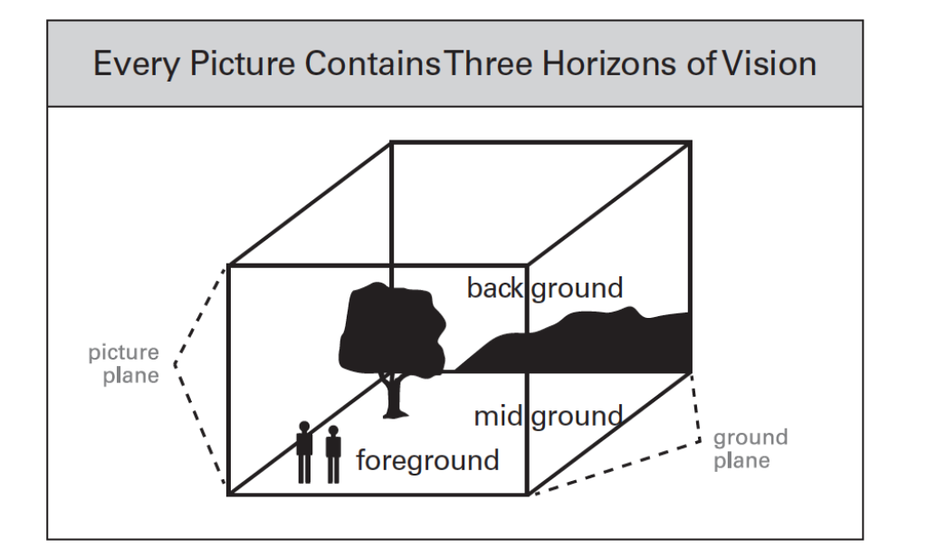Before you can appreciate the simple drawing of the tool itself, consider how our eyes are always looking at different horizons. Even when painting a picture, an artist tries to capture at least three horizons: