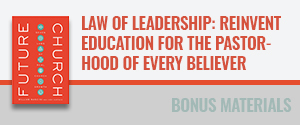 Below you will find links to the bonus materials referenced in the Future Church book. Cory and I hope that this additional content serves you well as you continue to design a better future for your church.